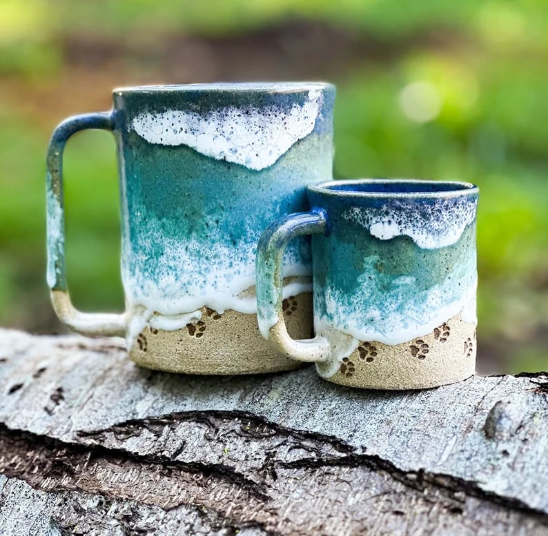 • ✨Enjoy moving your fingers along the side of the mug while drinking your favorite beverage! This mug is handmade and hand painted to remind you of waves rolling in to your favorite beach.
